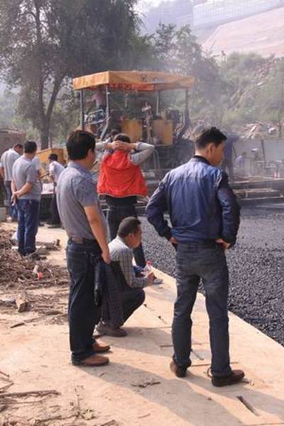 圖1—2為攤鋪機(jī)械正在跑道上進(jìn)行鋪設(shè)作業(yè)的場景