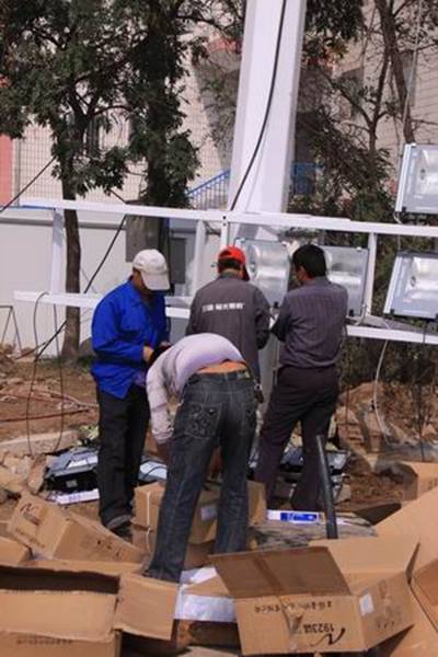 圖4為工人們進(jìn)行明光裝飾的場景