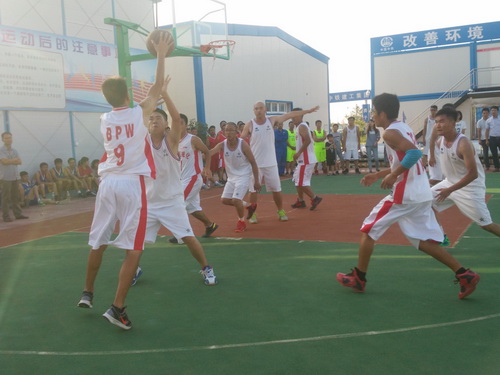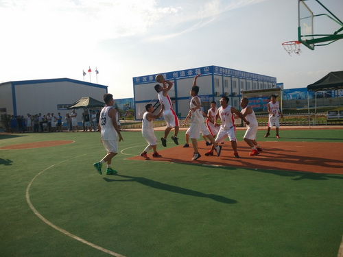 在此次的比賽中,參賽的單位有監(jiān)理3標(biāo)中企建發(fā)、1標(biāo)中鐵十二局、4標(biāo)四川場道、3標(biāo)中國華西、5標(biāo)上海路橋、8標(biāo)中鐵航空港、10標(biāo)中水十六局、6標(biāo)甘肅機械化共8支籃球隊進行參賽,建設(shè)單位也派隊參加,進行友誼賽,我們跟兄弟單位中鐵航空港,上海路橋,中水十六局、四川場道一決高下,最后入圍四強,在決賽的比賽中,我們再次遇見實力強勁的中水十六局,雙方隊員在籃球比賽現(xiàn)場氣氛熱烈,隊員們積極進攻,嚴密防守,精彩的配合,巧妙的搶斷,不時的將比賽氣氛推向高潮。天氣雖然炎熱,但絲毫沒有影響隊員的熱情,盡管兩支球隊都是業(yè)余籃球愛好者,但他們在比賽中均表現(xiàn)出較好的團隊協(xié)作能力,一群年輕人激情飛揚,帶球、傳球、搶斷、上籃,賽場對抗激烈,隊員個個揮汗如雨,最后在我方隊員的努力拼搏下,以32:30的比分,贏得第一。