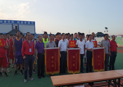 建設(shè)單位指揮部史副指揮長、工程部趙部長、監(jiān)理中企建發(fā)公司隋總為獲得冠軍、亞軍、季軍的籃球隊頒獎