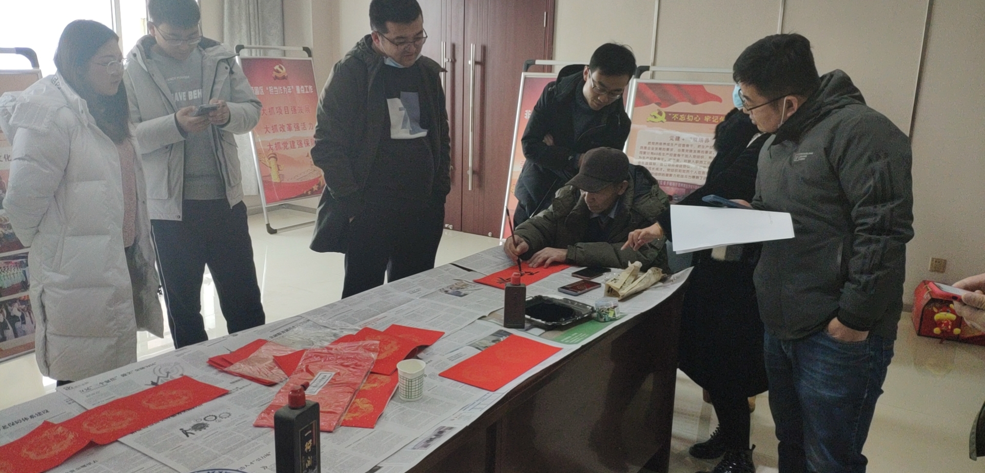 1月26日,民生銀行安寧支行和公司共同舉辦“迎新春·賀新禧·送春聯(lián)”活動(dòng),為了吸引公司員工駐足參與,該行精心準(zhǔn)備了喜慶火紅的對(duì)聯(lián),由特聘的書法老師在大會(huì)議室執(zhí)筆書寫對(duì)聯(lián)。書法老師潑墨揮毫,瘦金體、楷書體、行書體,各種字體游刃有余。烘托出節(jié)日的濃烈氛圍。