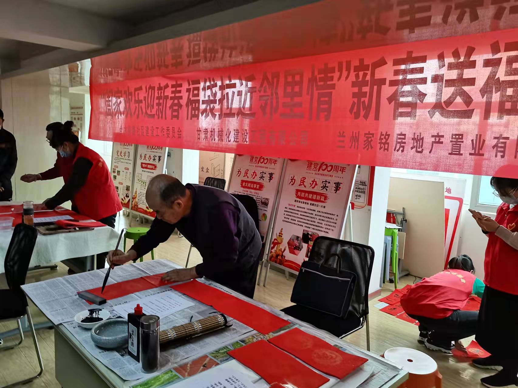 四季青街道合水南路社區(qū)大廳內,伴隨著喜氣洋洋的音樂,書法愛好者們不拘一格、揮毫潑墨,寫下一幅幅新春的寄語。